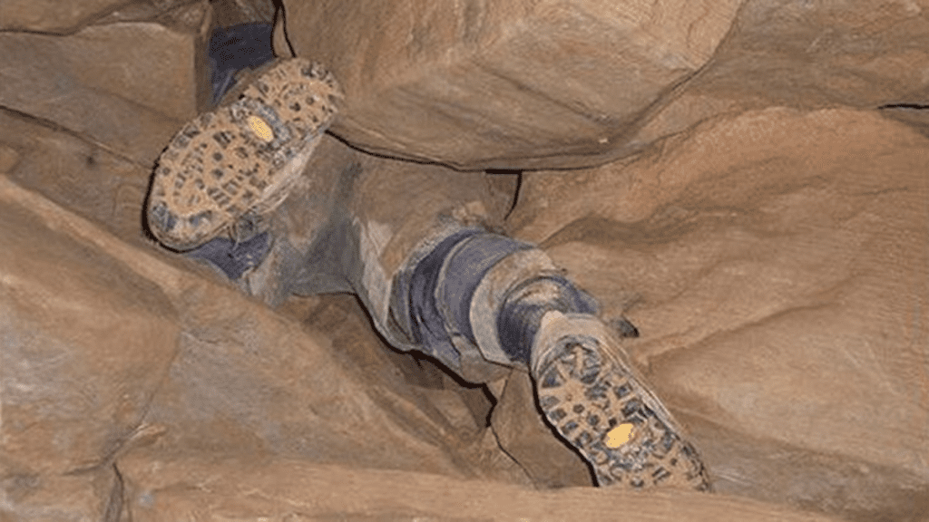 John no era un novato, pero la geografía de Nutty Putty es engañosa. Buscando el famoso paso conocido como el «Birth Canal», Jones se adentró en una fisura sin salida y extremadamente estrecha que más tarde sería bautizada como Ed’s Push. Al intentar avanzar, quedó atrapado boca abajo en un ángulo de 70 grados. En esta posición, el corazón debe trabajar el doble para bombear sangre fuera de la cabeza, un factor que se volvió el enemigo número uno de los rescatistas.