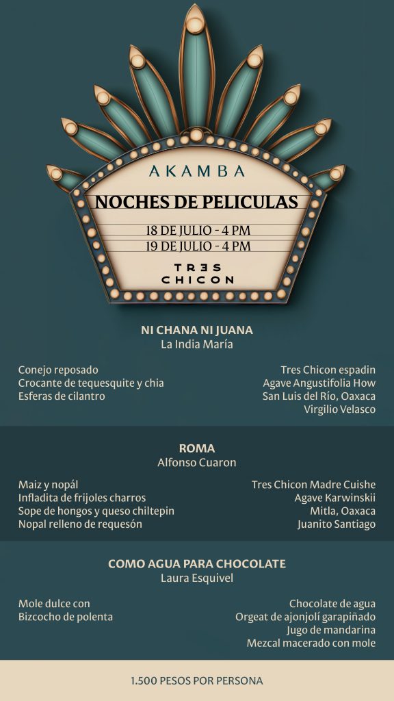 ¿Te imaginas ver a La India María con un mezcal en la mano y un bocado de conejo reposado en la boca? Esa es solo una de las joyas que ofrecerá “Noche de Películas by Tr3s Chicon”, la experiencia multisensorial que toma por asalto la galería de destilados Akamba en Casona Roma Norte los próximos 18 y 19 de julio.