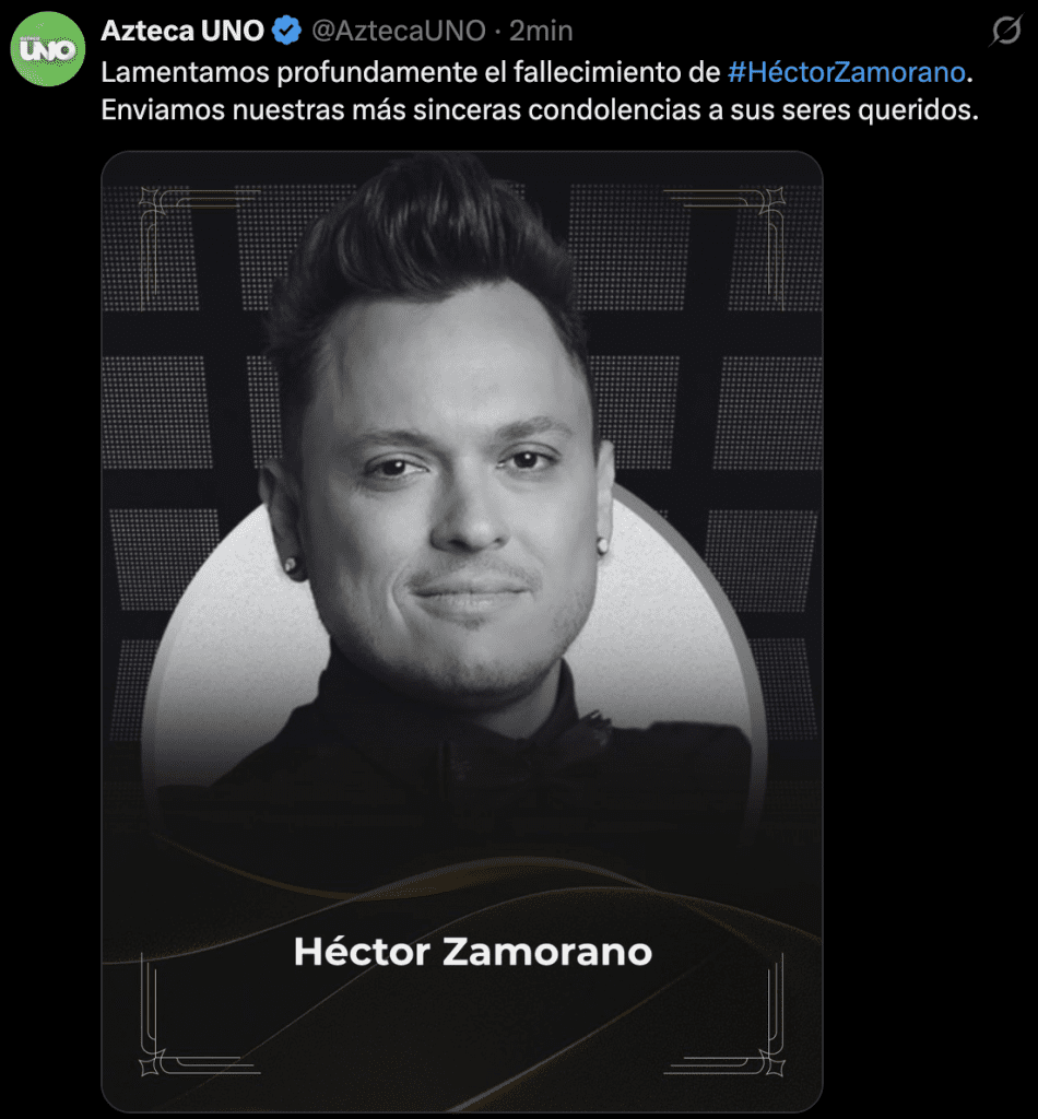 A partir de las últimas horas, las redes sociales se han llenado de comentarios y publicaciones que aseguran falsamente la muerte de Héctor Zamorano, el exparticipante de la primera generación del reality La Academia. Hasta el momento, no existe ninguna confirmación oficial ni declaración por parte de familiares, representantes o medios confiables que verifique estas versiones.