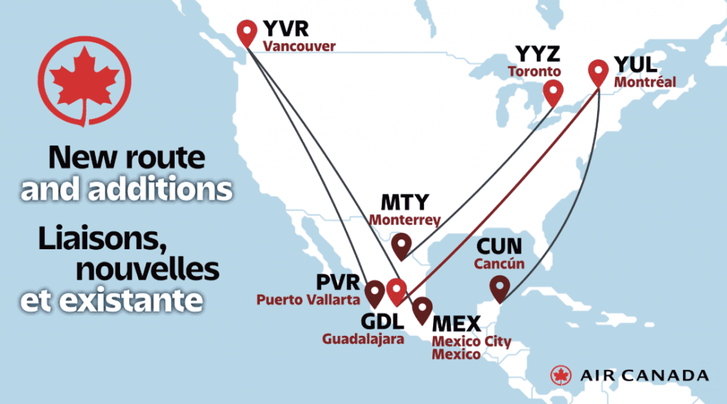 - Monterrey – Toronto: Aumenta a 4 vuelos semanales.