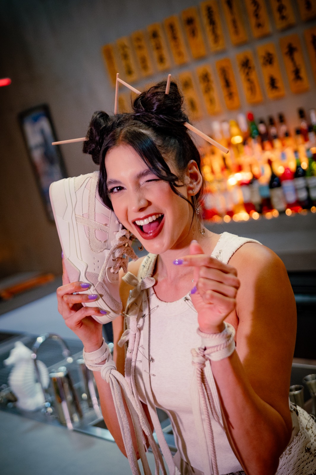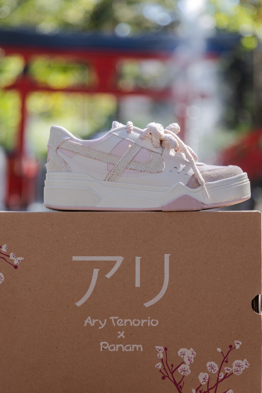 Esta alianza constituye una celebración del diseño y la creatividad a través de un calzado que honra la producción nacional. El diseño del par es de carácter versátil y unisex, ofreciendo la posibilidad de complementar distintos conjuntos. El modelo se inspira en el aprecio de Ary Tenorio por la cultura japonesa y se presenta con una paleta de colores pastel.