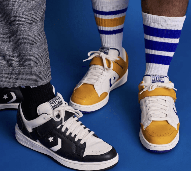 La colección retoma los colores clásicos que hicieron del Weapon un referente cultural, lanzándose en dos combinaciones: blanco vintage con amarillo y negro con blanco vintage. Esta no es la primera vez que ambas marcas unen fuerzas; ya en 2017 colaboraron en una exitosa colección del modelo One Star. +1