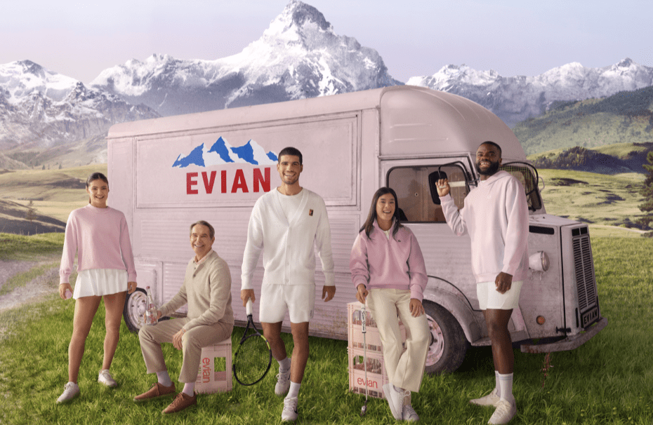 Para marcar este hito, evian® presentó un retrato familiar que parece sacado de una editorial de alta montaña. En las cumbres nevadas de los Alpes franceses, Jeff Koons posa junto a la élite del deporte mundial: los tenistas Carlos Alcaraz, Emma Raducanu y Frances Tiafoe, y la golfista Céline Boutier. La imagen, que incluye un camión de reparto vintage de la marca, simboliza el viaje de dos siglos desde una fuente local protegida hasta las mesas más exclusivas del mundo.