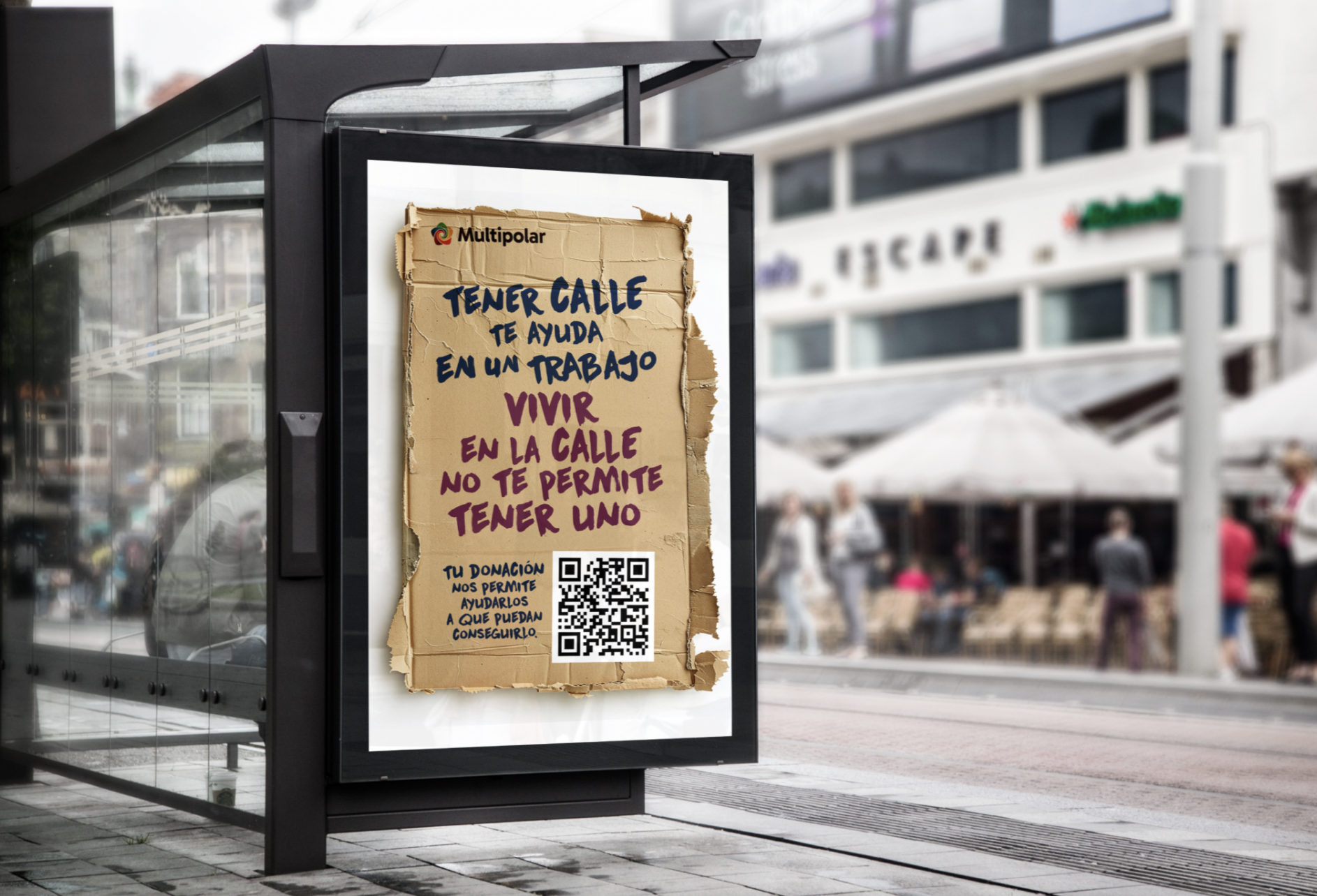 La estrategia incluye mensajes directos a responsables de compañías, piezas gráficas de alto impacto en vía pública, contenidos digitales y un video central que retrata la cotidianeidad urbana contrastada con una cifra que interpela: más de 9.400 personas viven en situación de calle en la Ciudad de Buenos Aires y la mayoría no es vista. Cada ejecución fue pensada para incomodar desde el respeto y activar desde la empatía.