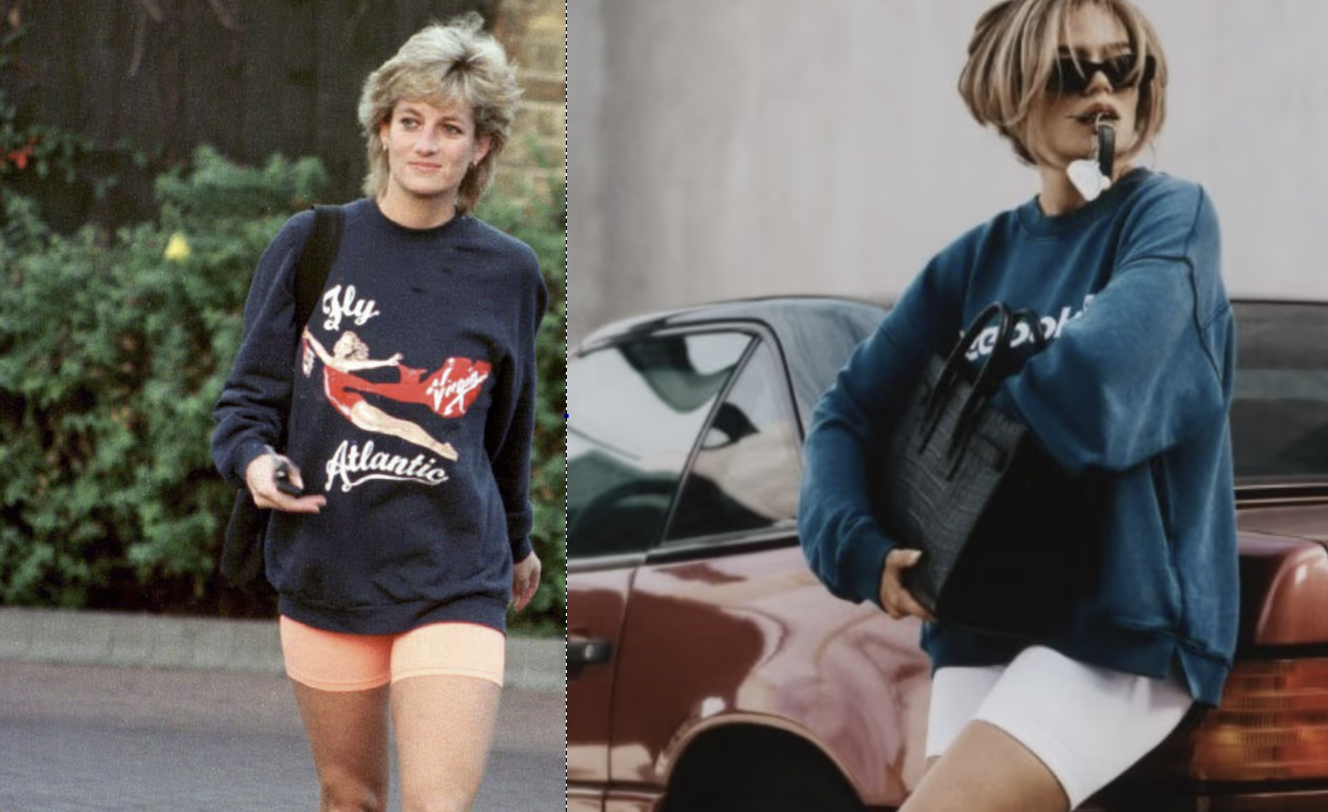 Durante la década de los noventa, Diana de Gales rompió con los códigos rígidos del vestuario real y adoptó una estética relajada, funcional y poderosa. Sudaderas oversized, shorts de ciclista, calcetas altas y tenis se convirtieron en su sello personal cuando decidió construir una imagen pública más libre e independiente. Sin proponérselo, Lady Di sentó las bases del athleisure moderno, una tendencia que hoy domina el street style global.