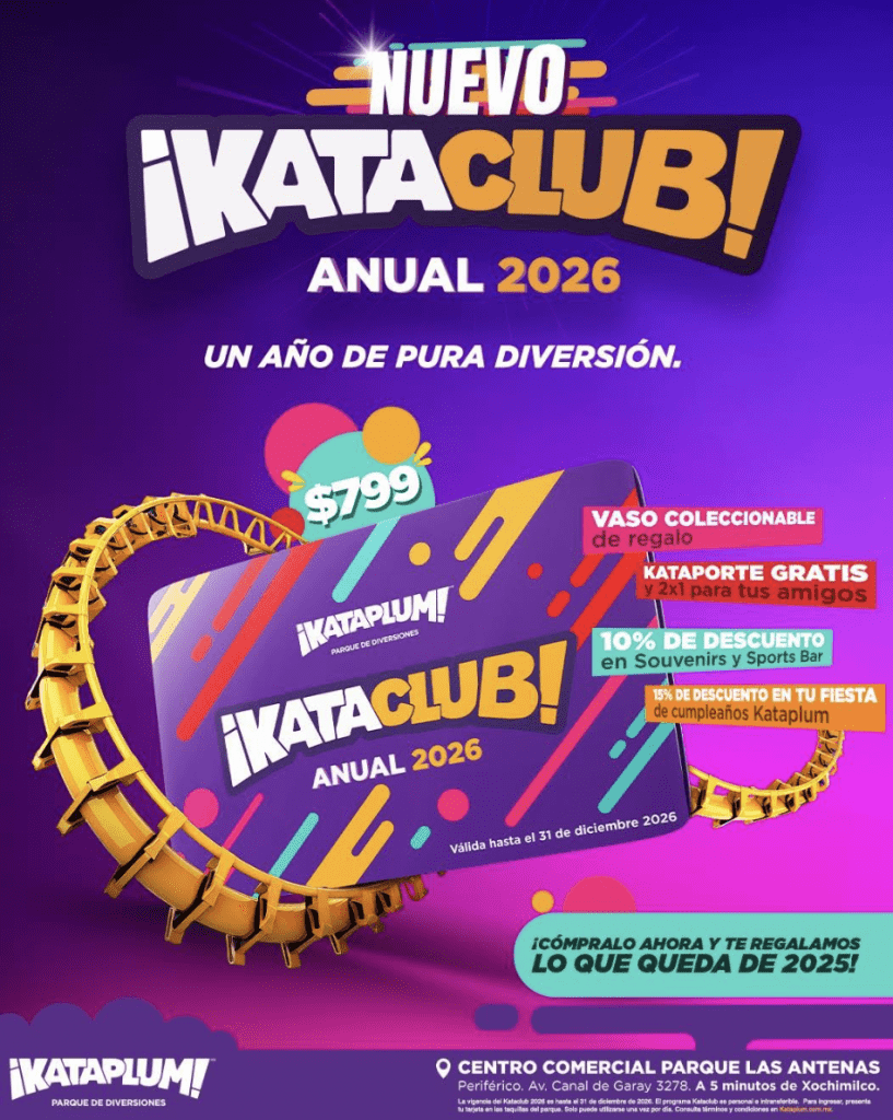 La propuesta de valor del Kataclub Anual es contundente. Con un costo de $799 pesos, el pase equivale prácticamente al precio de dos «Kataportes» individuales. Al adquirirlo, los usuarios obtienen acceso ilimitado a más de 30 juegos mecánicos y atracciones hasta el 31 de diciembre de 2026, lo que lo convierte en una inversión inteligente para los amantes de las emociones fuertes.