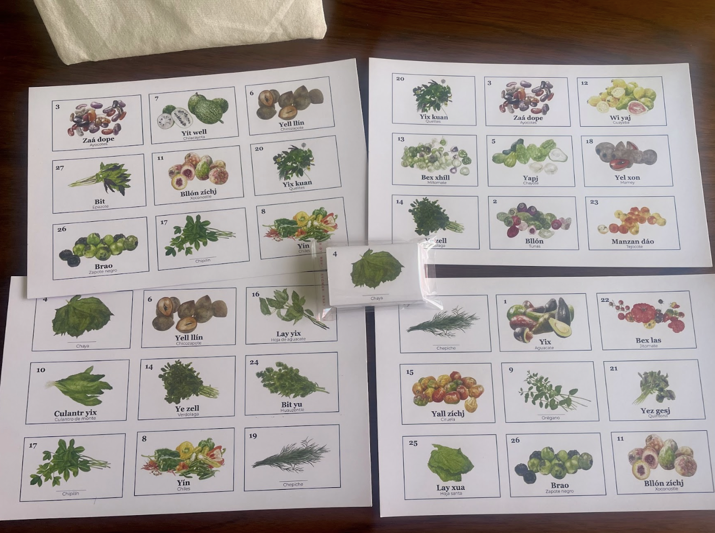 El proyecto es resultado de la colaboración entre el colectivo Dill Yel Nbán, integrado por jóvenes de Yalálag y Betaza; Opuntia Biodiversidad Alimentaria, plataforma creativa fundada por Ana Ezcurra; y Fundación Herdez, organización que ha impulsado el conocimiento de los quelites y de la cocina mexicana tradicional. Juntos crearon un juego de lotería y un memorama que incorporan vocabulario en zapoteco serrano, acompañado de ilustraciones de quelites y frutos que crecen en Villa Hidalgo Yalálag y en otros pueblos de la región.
