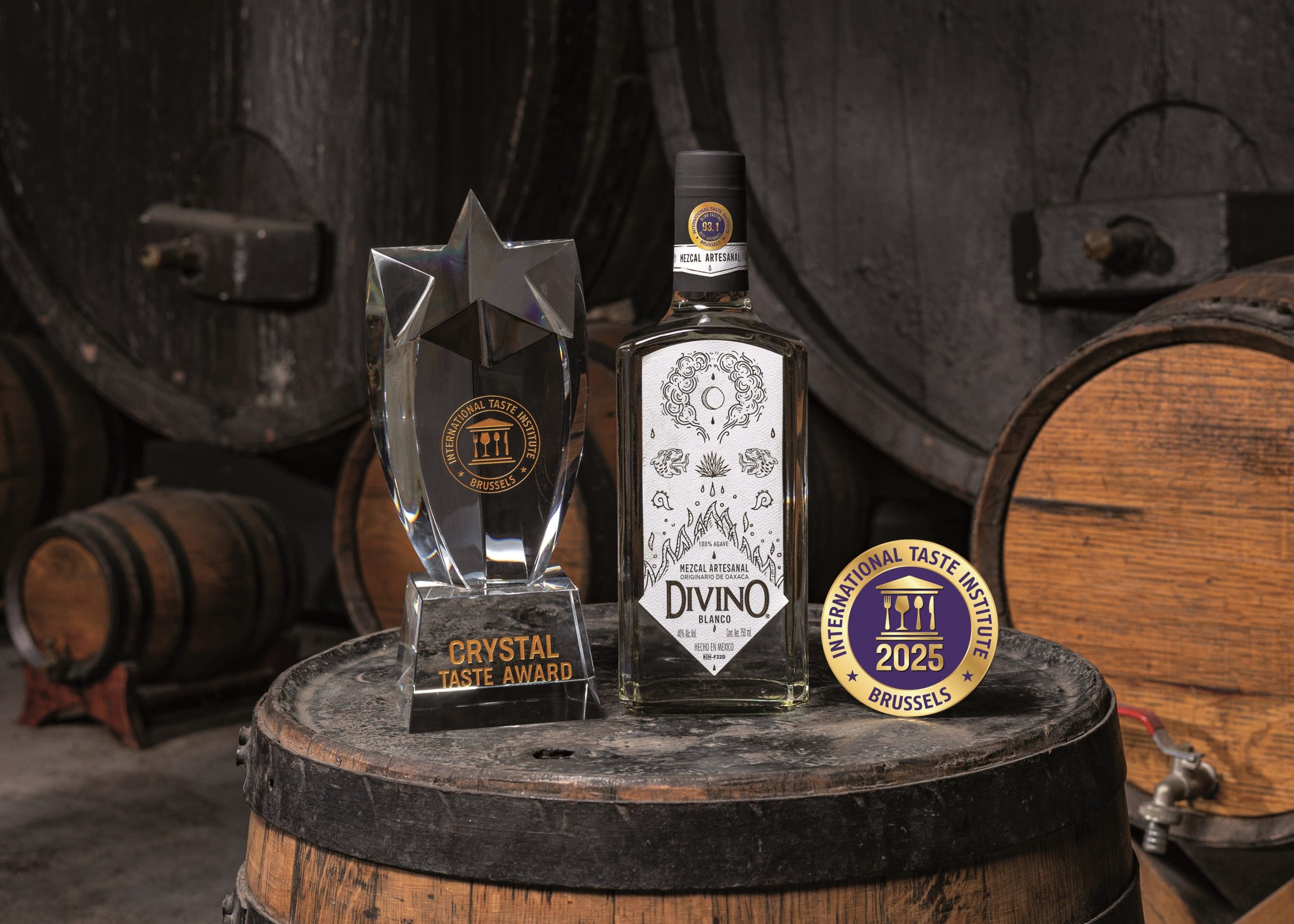 Directo de Matatlán, Oaxaca —la capital del mezcal—, Mezcal Divino Blanco llega con credenciales de rockstar: es el único mezcal que suma 12 estrellas de oro (cuatro años seguidos con 3 estrellas y calificaciones >90 pts), Superior Taste Award anual y el rarísimo Crystal Taste Award del International Taste Institute (iTQi), la cata a ciegas más influyente del planeta.