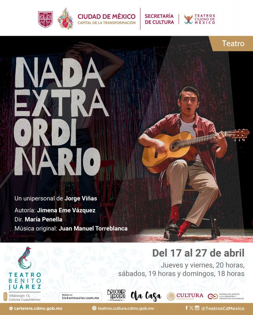 En la actualidad, el éxito parece medirse en luces brillantes y ovaciones de pie, la obra Nada Extraordinario llega para cuestionar esa obsesión por el reconocimiento. Escrita por Jimena Eme Vázquez, protagonizada por Jorge Viñas y dirigida por María Penella, este monólogo unipersonal regresa a los escenarios para su tercera temporada en el Teatro Benito Juárez del 17 al 27 de abril.