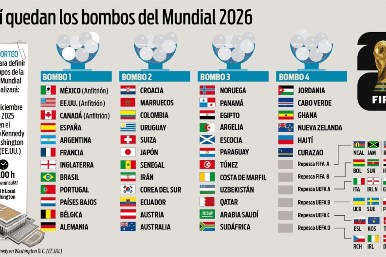 México debuta en casa contra Sudáfrica; así quedaron los grupos del torneo más grande de la historia del fútbol Por: Rodrigo Pujol Ciudad de México, 5 de diciembre de 2025 — El sorteo del Mundial 2026, realizado este viernes en el histórico John F. Kennedy Center for the Performing Arts...
