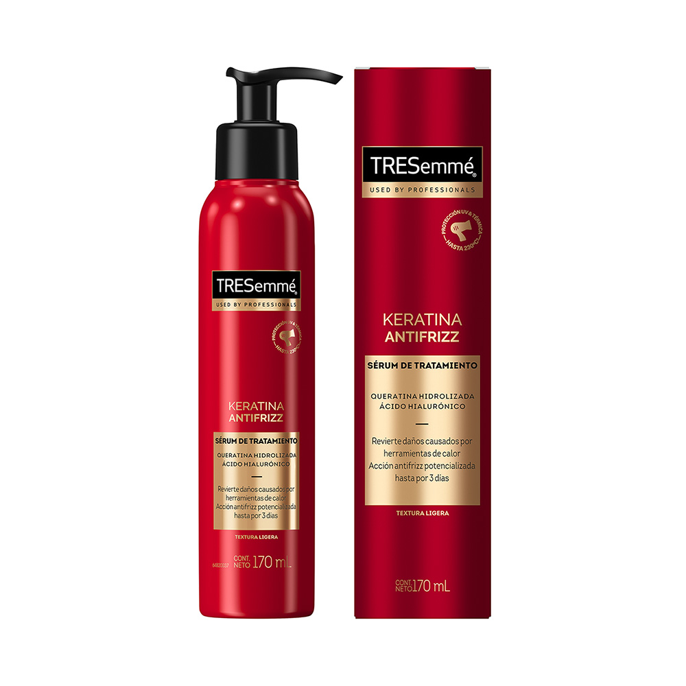 - Escudo térmico. Antes de plancha o tenaza, Serum Tratamiento Keratina Antifrizz (protege hasta 230ºC).