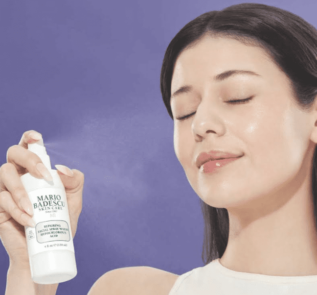 - Repairing Facial Spray con ácido hipocloroso: en cualquier momento del día para calmar, refrescar y reforzar la barrera.