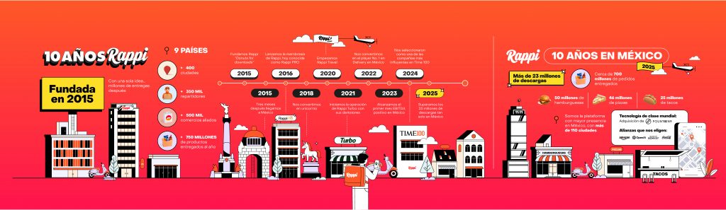 Mirando hacia el futuro, Rappi reafirma que México seguirá siendo uno de sus mercados más estratégicos. La compañía acelerará el crecimiento de su modelo Turbo y fortalecerá su membresía Rappi PRO con nuevas alianzas exclusivas con gigantes como Amazon, OpenAI y Marriott Bonvoy. Además, reforzará su compromiso social, ya que en alianza con Alimento para Todos ha rescatado más de 150 toneladas de alimentos y con Coca-Cola ha recuperado más de 65 toneladas de material reciclado. Después de una década de crecimiento sostenido, Rappi afirma que continuará expandiendo su impacto, mejorando la vida de millones de personas en México y Latinoamérica.