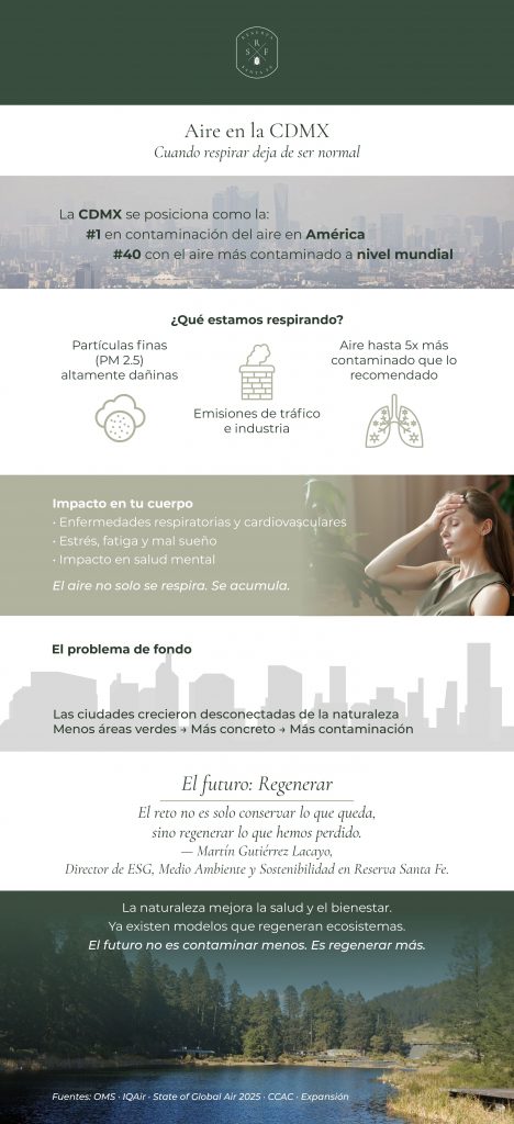 Para los expertos, el futuro de las ciudades depende de su capacidad para reconectarse con el entorno natural. Ya existen modelos habitacionales y urbanos que buscan sanar el suelo y limpiar el aire mediante la reforestación y la gestión sostenible de recursos. La premisa es clara: para volver a respirar con normalidad, la CDMX necesita dejar de ser una mancha de concreto y convertirse en un pulmón vivo.