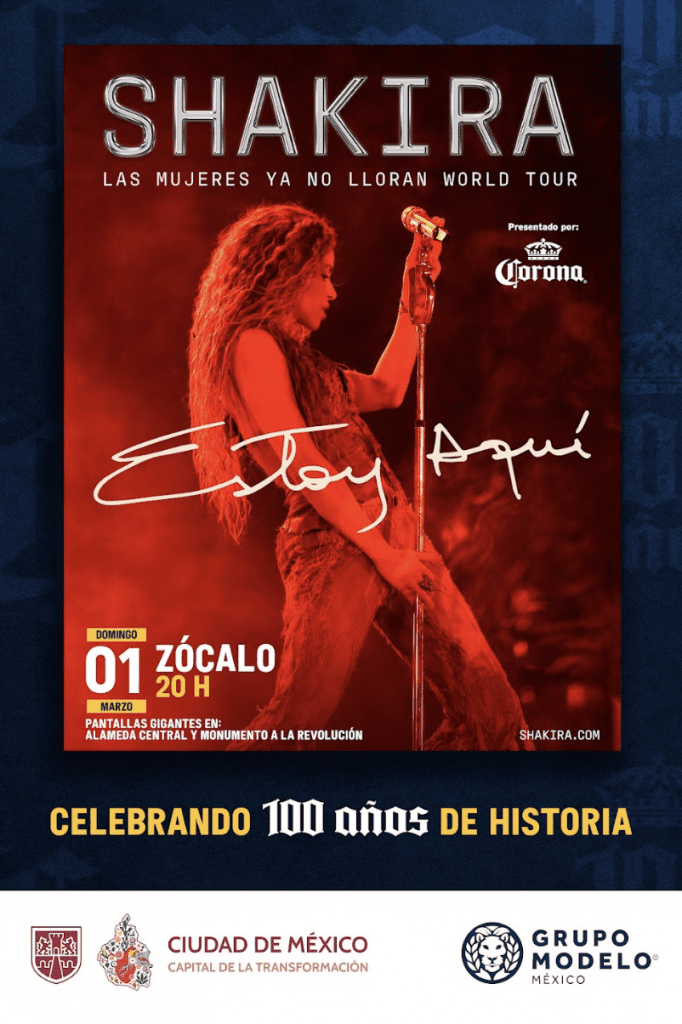 #ShakiraEnElZócalo #CDMX #GrupoModelo100Años #ConciertoGratuito #CoronaExtra #ShakiraMéxico #ZócaloCapitalino #CulturaCDMX