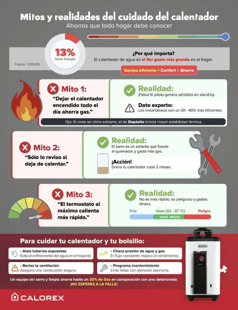 Cuando hablamos del calentador de agua, casi todos tenemos una opinión heredada: que si “dura para siempre”, que si “mientras caliente, está bien”, que si “los eléctricos gastan demasiado”. La realidad es otra. Alrededor del funcionamiento y mantenimiento del boiler circulan más mitos que certezas… y algunos pueden salir caros.