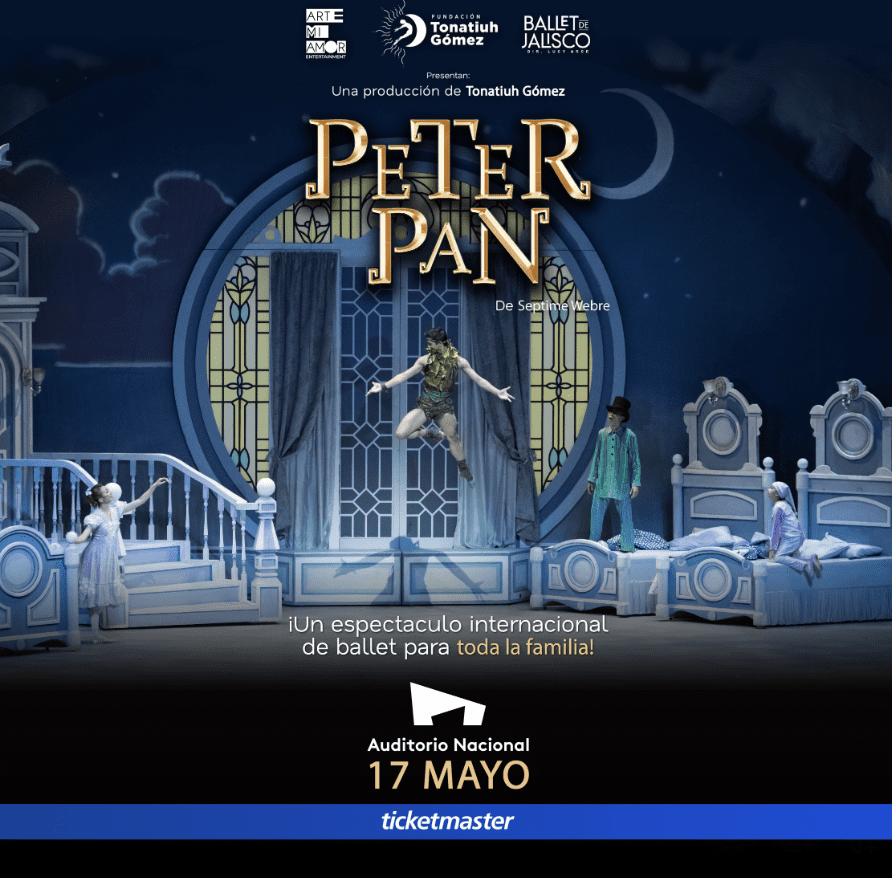Una producción de escala internacional Bajo la producción del primer bailarín y gestor Tonatiuh Gómez y la dirección coreográfica del aclamado Septime Webre, esta obra no es un ballet convencional. Se trata de un despliegue artístico que reúne a más de 85 profesionales en escena, apoyados por una compleja tecnología de vuelo escénico y una integración de multimedia y videomapping que transforma el Auditorio Nacional en el vibrante mundo de Nunca Jamás.