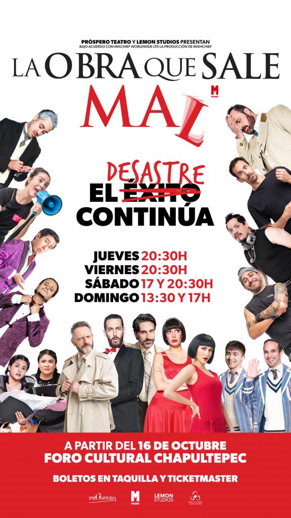 La aclamada comedia “La Obra Que Sale Mal” regresa a la Ciudad de México con una nueva temporada en el Foro Cultural Chapultepec a partir del 16 de octubre. El montaje —famoso por su mezcla explosiva de comedia física, enredos y desastres escénicos— arma un elenco de primera que promete convertir cada función en una tormenta perfecta de risas.
