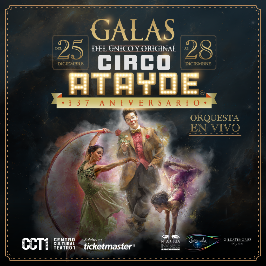 El Circo Atayde Hermanos cumple 137 años y los celebra como mejor sabe: a lo grande. Del 25 al 28 de diciembre, el Centro Cultural Teatro 1 (CCT1) se convertirá en un escenario de maravillas con acrobacias de alto vuelo, payasos entrañables, números ecuestres y animales exóticos, en un montaje que promete encender la temporada navideña y conquistar a toda la familia.
